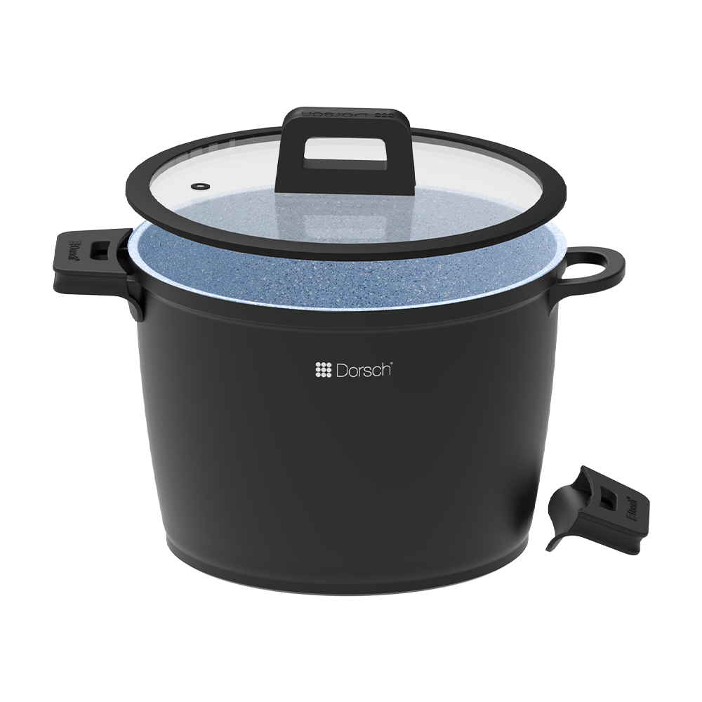 28cm Deep Casserole (10L) – Proglide Non-Stick Marble Ceramic Coating Flat Glass Lids with Silicone Rim – Removable Silicone Handles