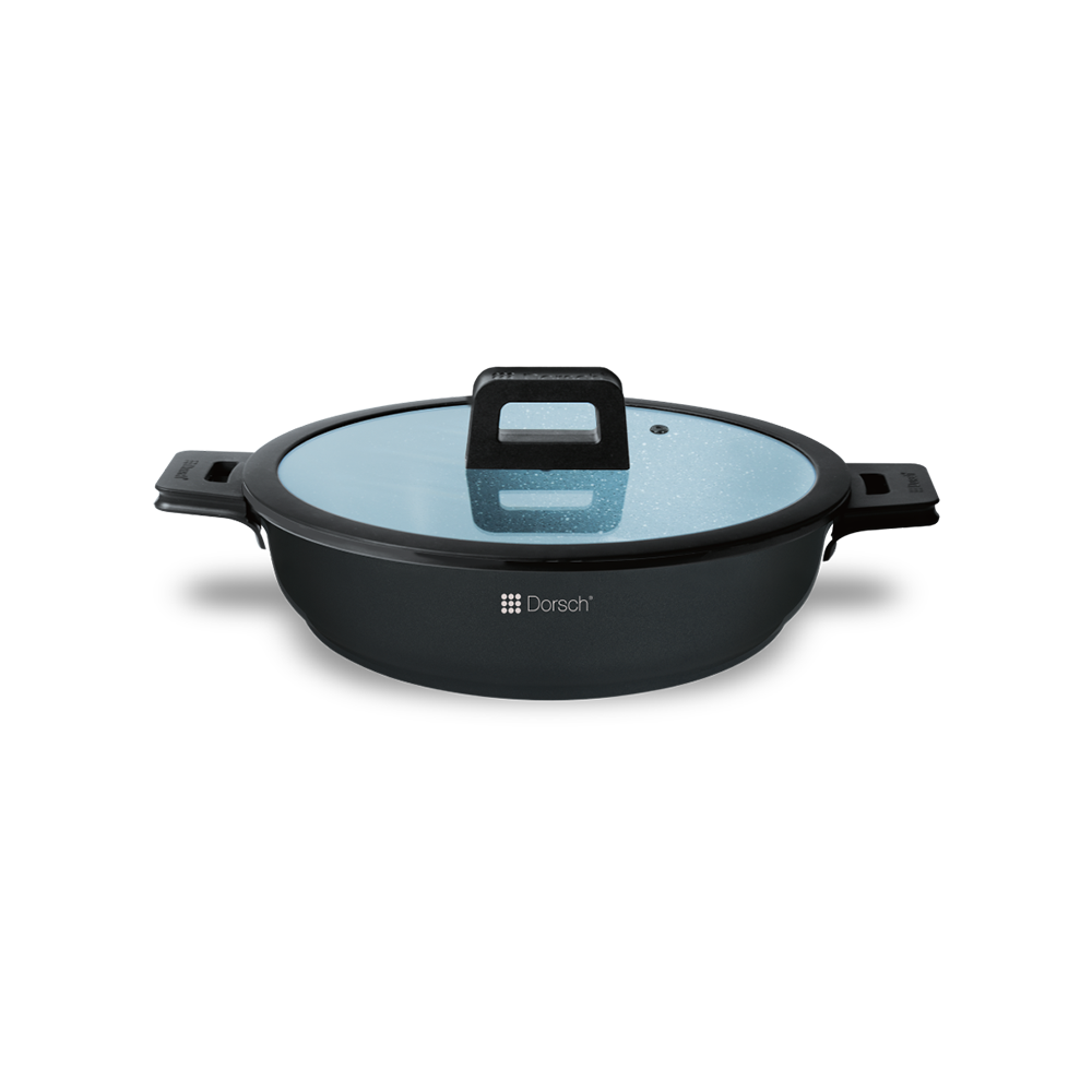 28cm Shallow Casserole – Non-Stick Ceramic Coated, Flat Lid with Silicone Rim & Heat-Resistant Silicone Handles