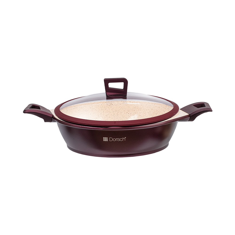 28cm Shallow Casserole – Non-Stick Ceramic Coated with Flat Silicone Rimmed Lid & Heat-Resistant Silicone Handles