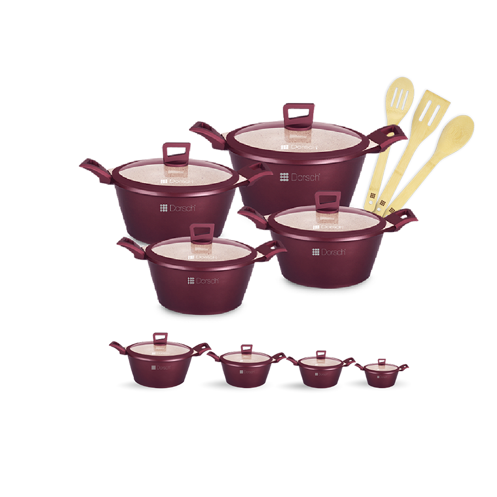 4-Piece Casserole Set (20cm, 24cm, 28cm, 32cm) – Non-Stick Ceramic Coated with Flat Silicone Rimmed Lids