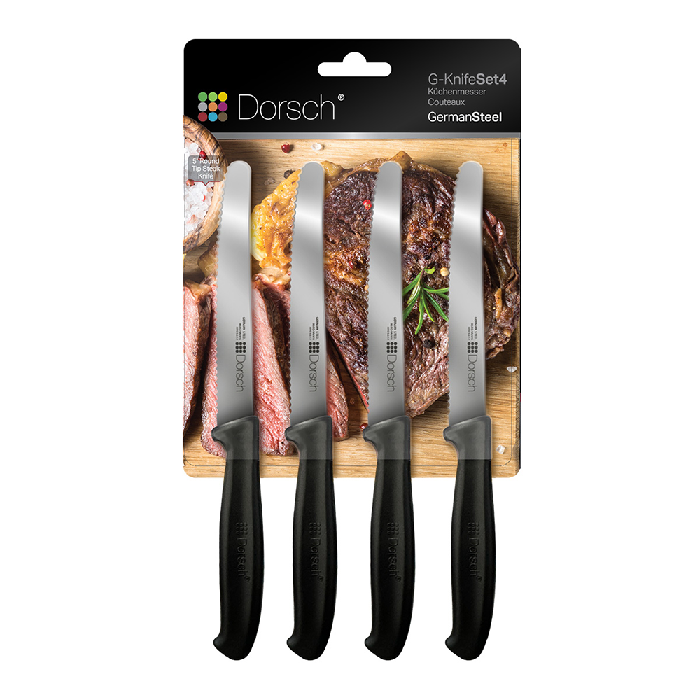 4-Piece Steak Knife Set – Black Handle, 4-Inch German 1.4116 Stainless Steel Blade