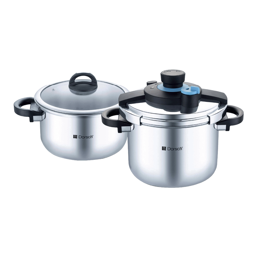 طقم طناجر ضغط 8 ليتر + 6 ليتر معدن ستانلس مقاوم للصدء 1810