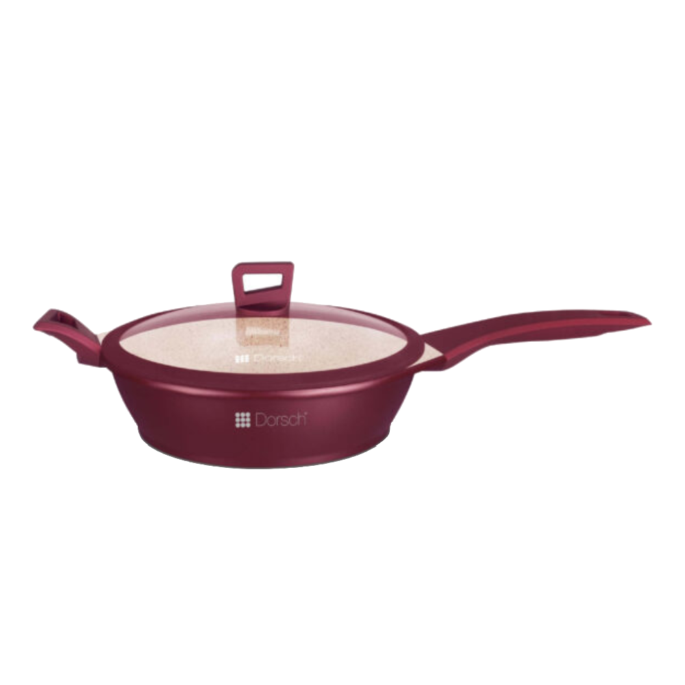 مقلاة عميقة 28 سم مغلفة بالسيراميك الغير لاصق غطاء مسطح مع حرف الغطاء من السليكون